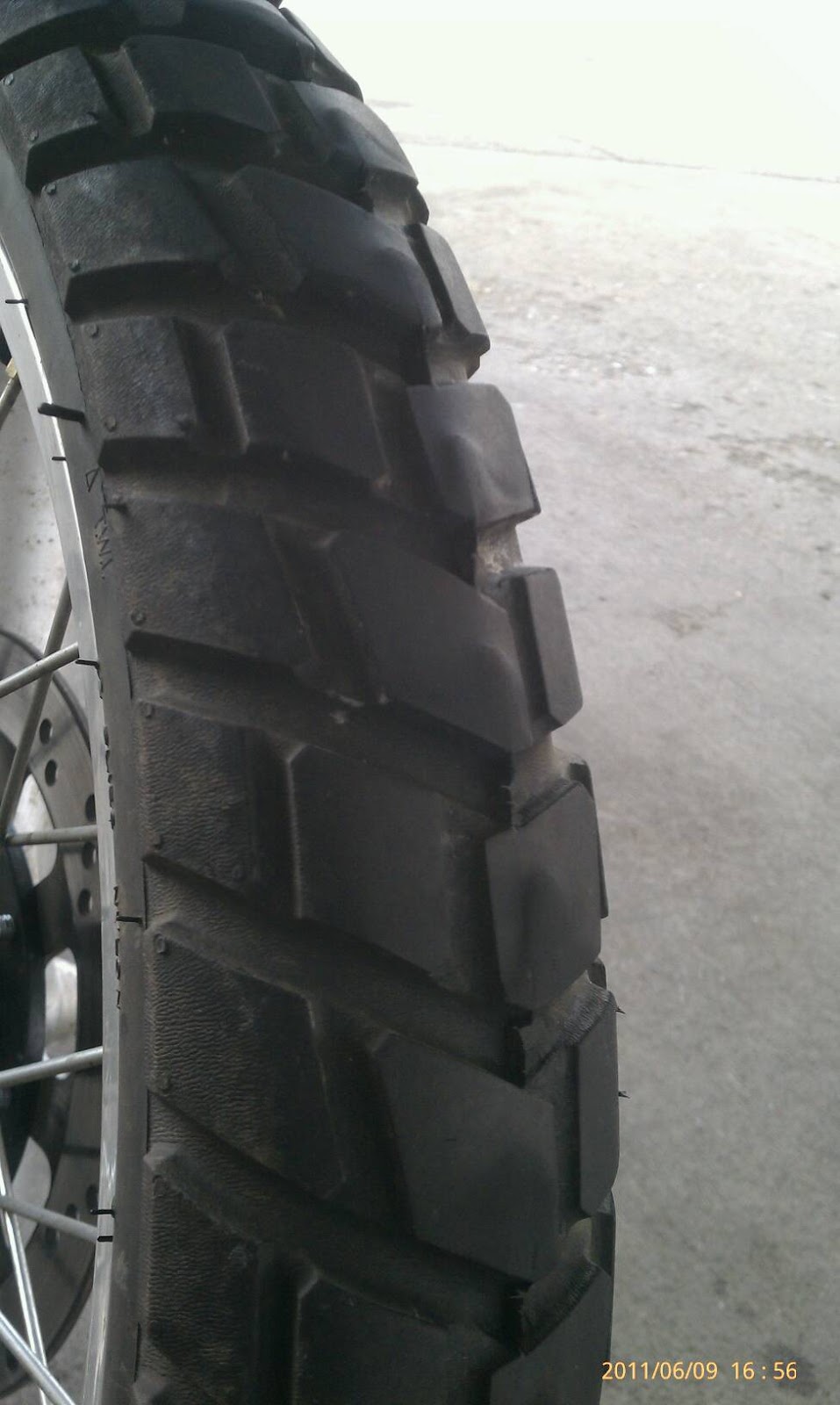 On a side note, my front tire is getting some funky wear pattern in it. Little bulged are coming out of the tread. It's not too worn down. Atleast another 1000 miles atleast I would guess if this wasn't coming up.